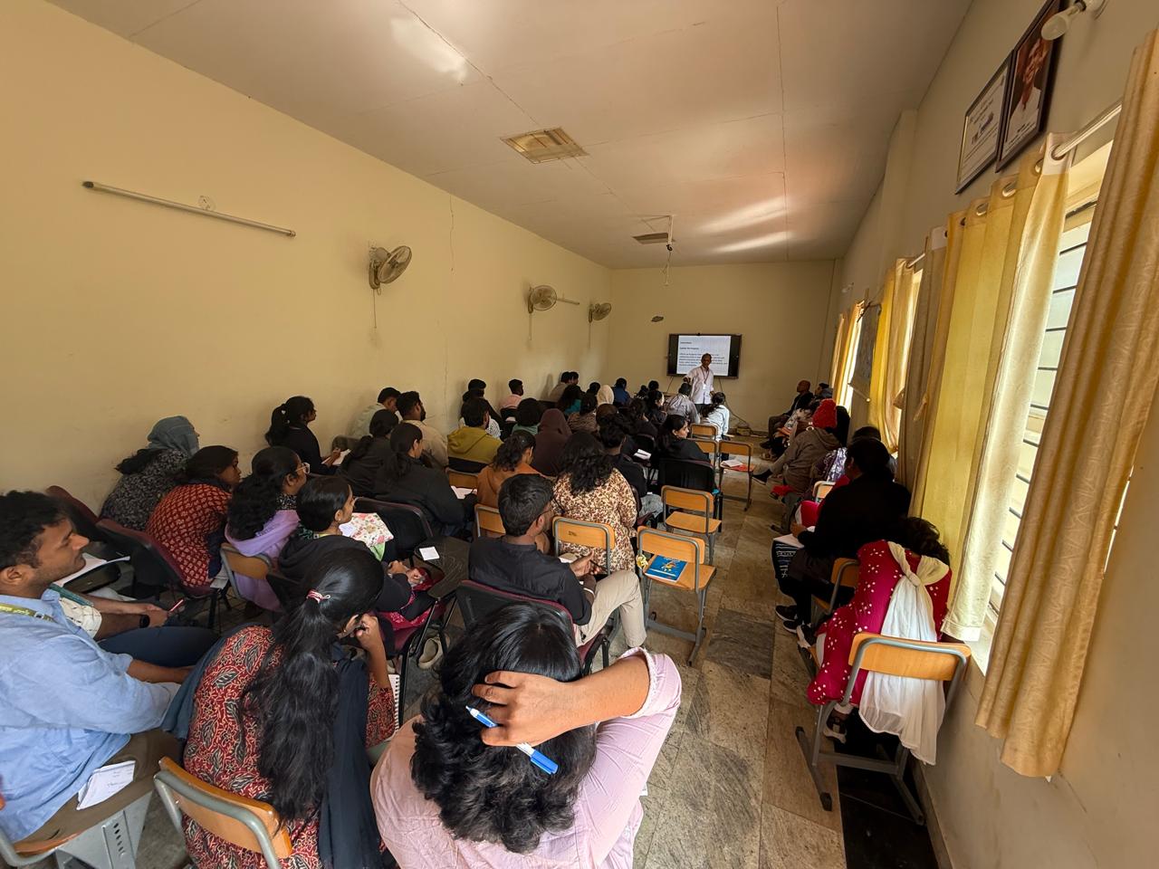Participatory Rural Appraisal (PRA) sessions mapped community needs and strengths collaboratively. A health camp provided free check-ups, hygiene workshops, and medical aid, addressing key rural health gaps. The camp built empathy, practical skills in community mobilization, and insights into sustainable development, preparing students for impactful social work.
